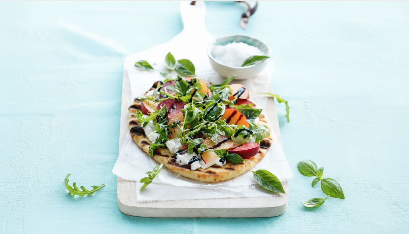 Plum, Burrata, and Balsamic Flatbread